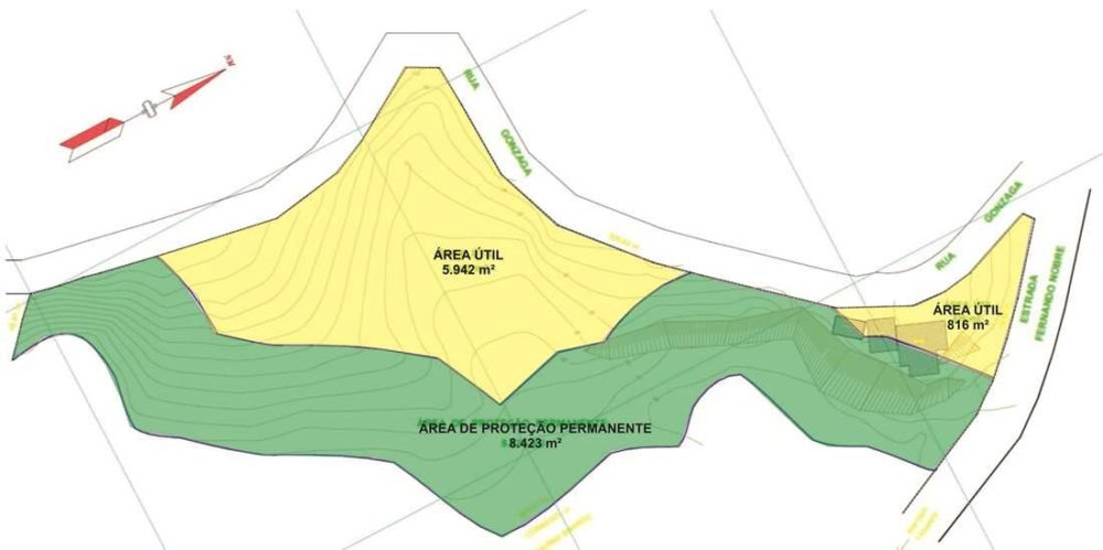 - 6.758,00 m² utilizável, dividido em dois platôs: (1) 5.942,00 m² e (2) 816,00 m².