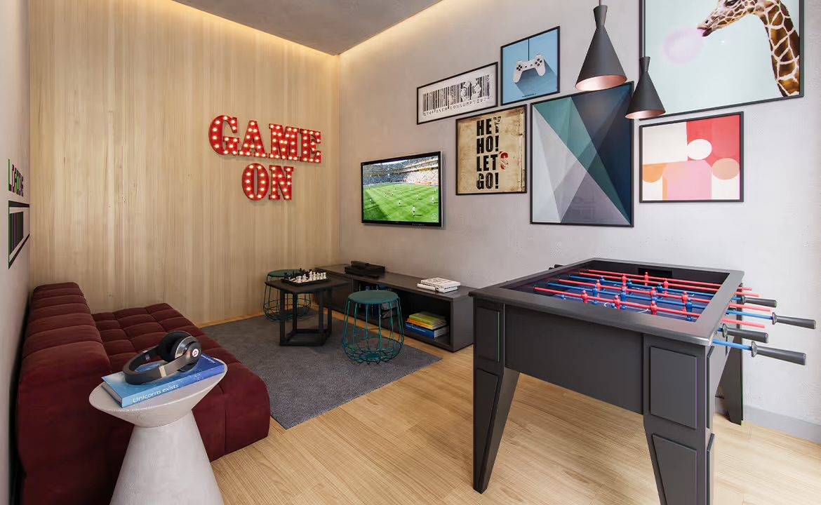 A diversão da família está garantida nas áreas de convivência, como Piscina, Brinquedoteca, Playground, Pet Place e Salão de Jogos, onde as crianças têm a oportunidade de se divertir com os amigos ou aproveitar a convivência com os pais na segurança do residencial.