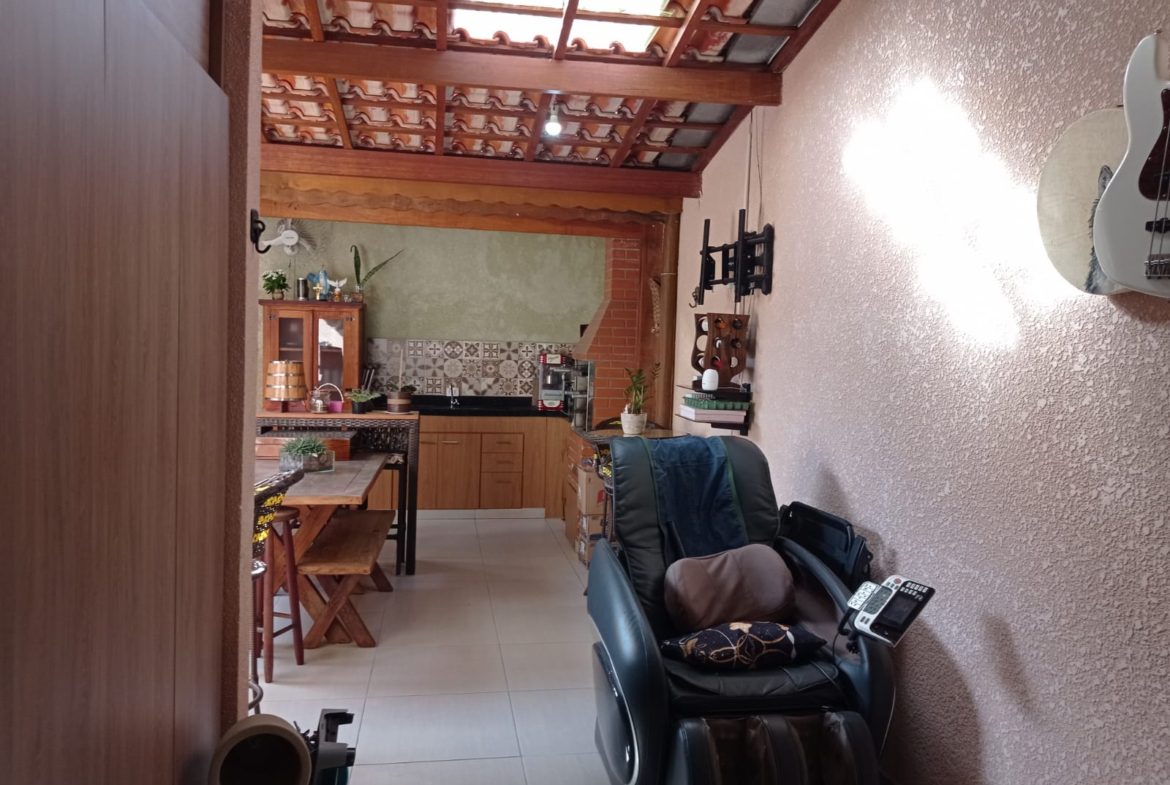 Casa 70 condomínio fechado 3 dormitórios com 1/suite, quintal coberto com churrasqueira