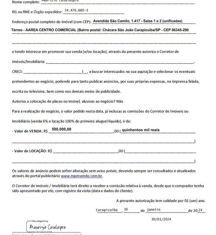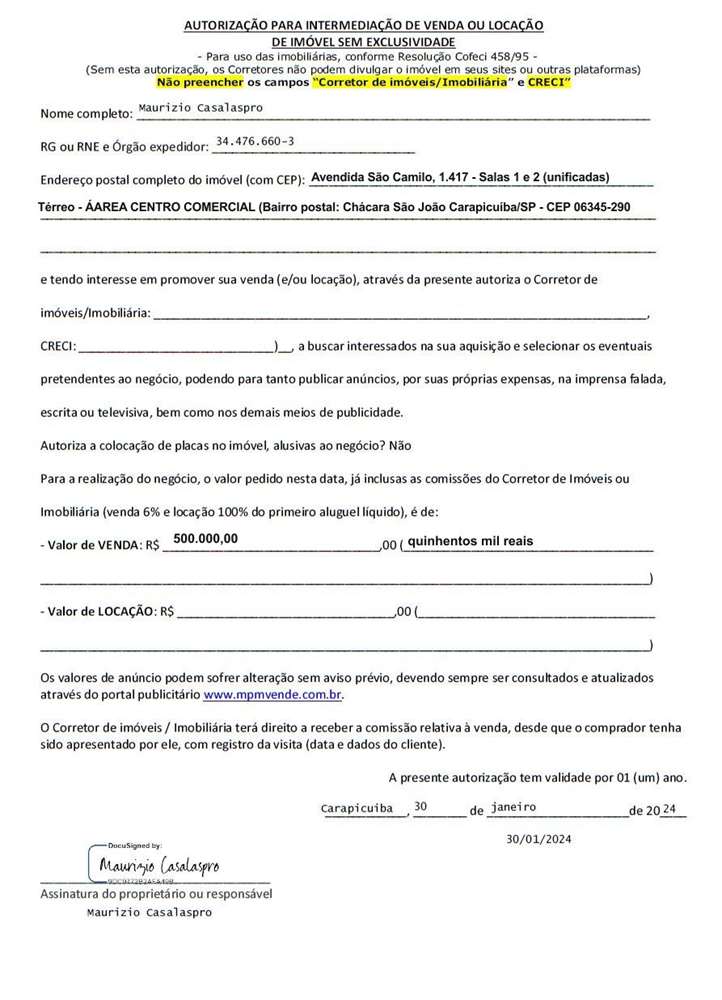 - Endereço: Av. São Camilo, 1.417 – Salas 1 e 2 (unificadas), Térreo – ÁAREA CENTRO COMERCIAL (Bairro postal: Chácara São João), Carapicuíba/SP – CEP 06345-290