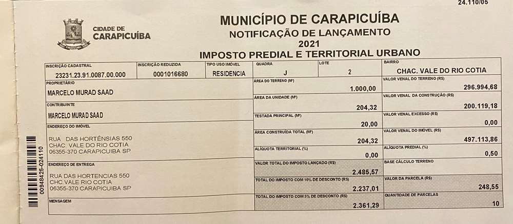 Inscrição Cadastral: 23231.23.91.0087.00.000/ Carapicuíba
