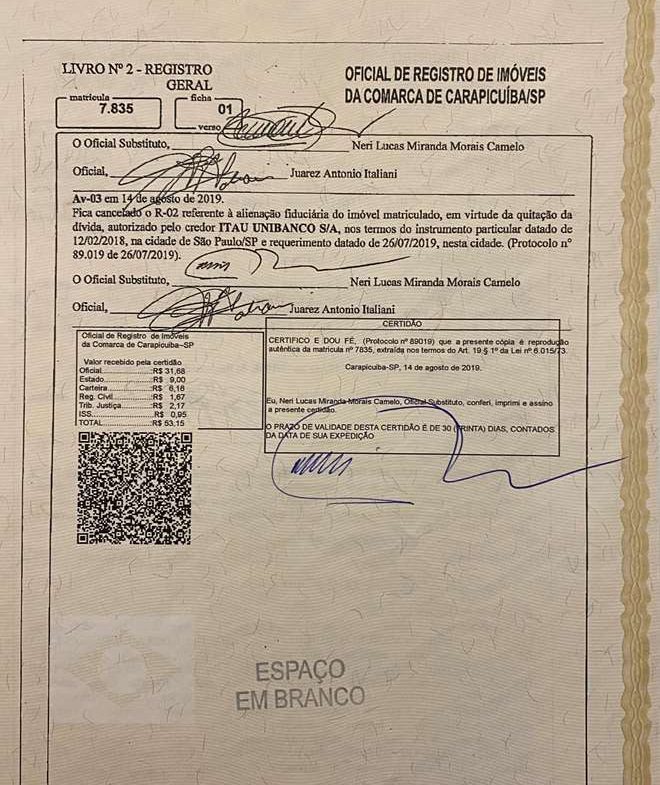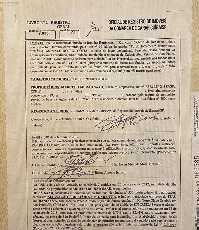 Nº Matrícula: 7.835 – R.I. de Carapicuíba