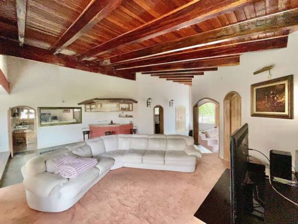- Estar, lareira em desnível com sofá de alvenaria, janta, bar com balcão, pia e prateleiras e escritório mais reservado.