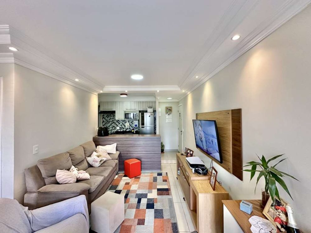 - Living com sala de estar e sala de jantar e varanda coberta. Sancas c/ iluminação embutida.