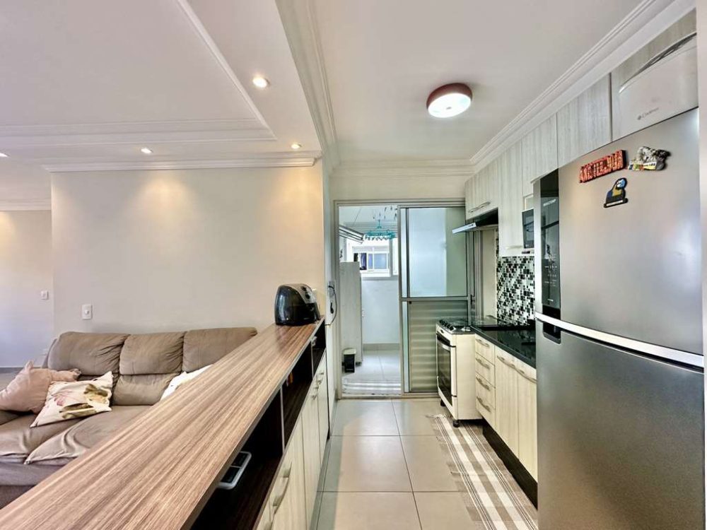 - Cozinha integrada ao living, com armários planejados.