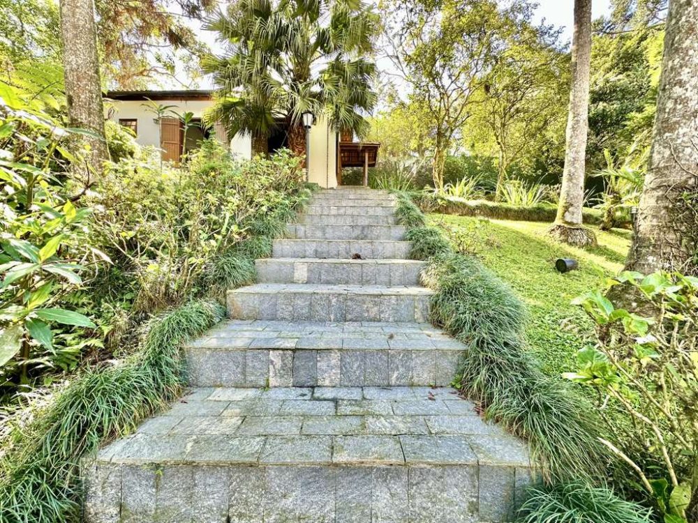 • Jardim tropical com paisagismo formado, palmeiras, hortênsias, pitanga e jabuticaba.