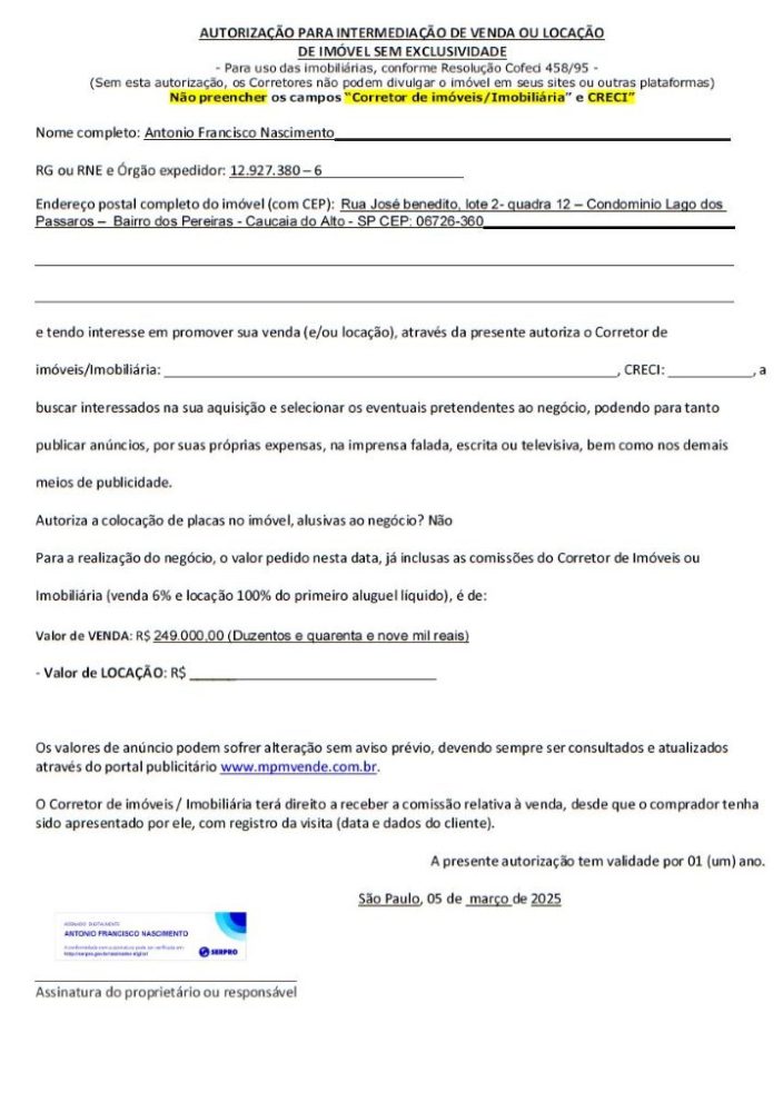 • Valor de Venda: R$ 249.000,00 (duzentos e quarenta e nove mil reais)