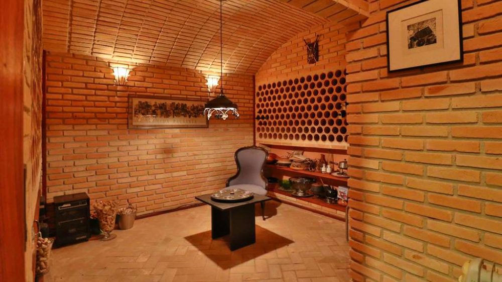 - Adega grande com teto em abóboda imponente, com capacidade para muitas garrafas e nichos.