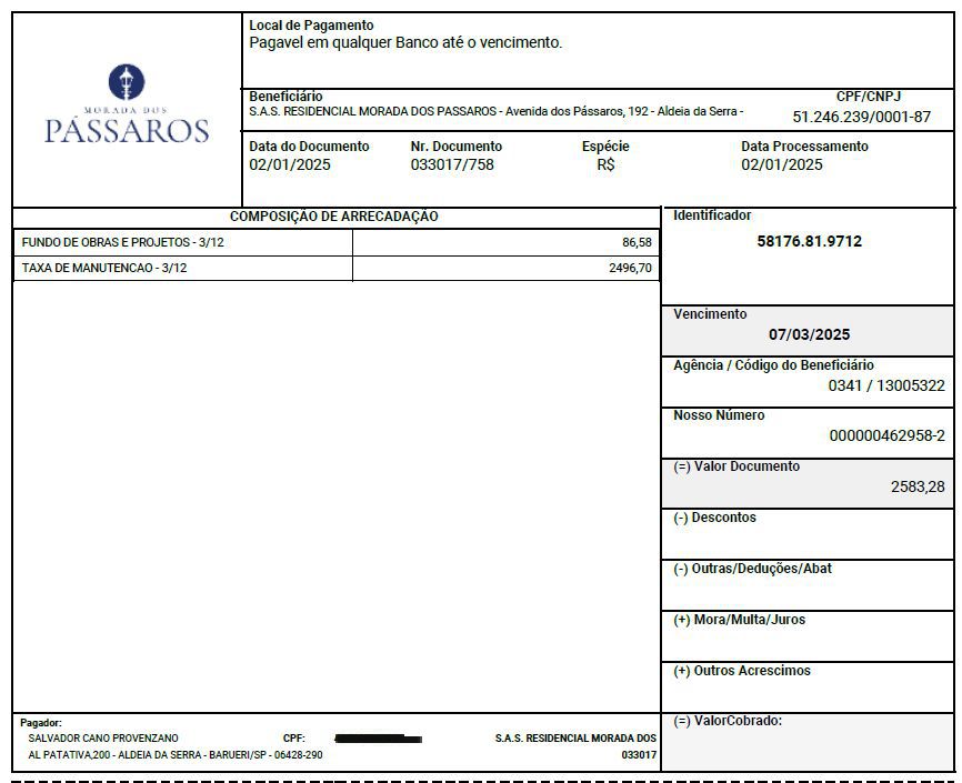 - Valor do condomínio (Mai/25): R$ 2.583,28
