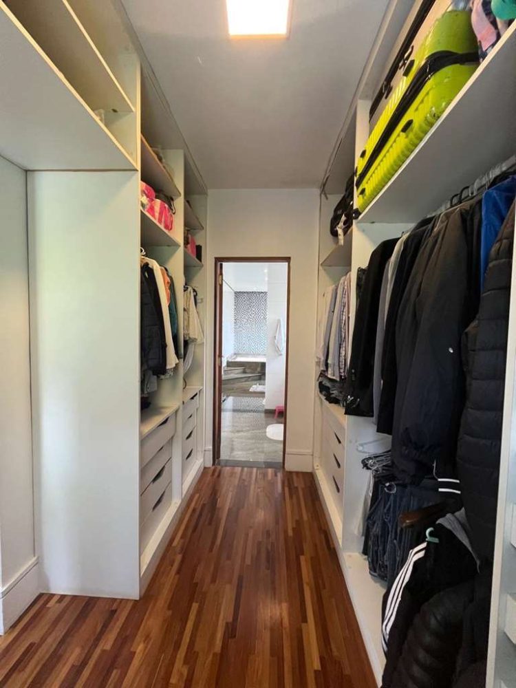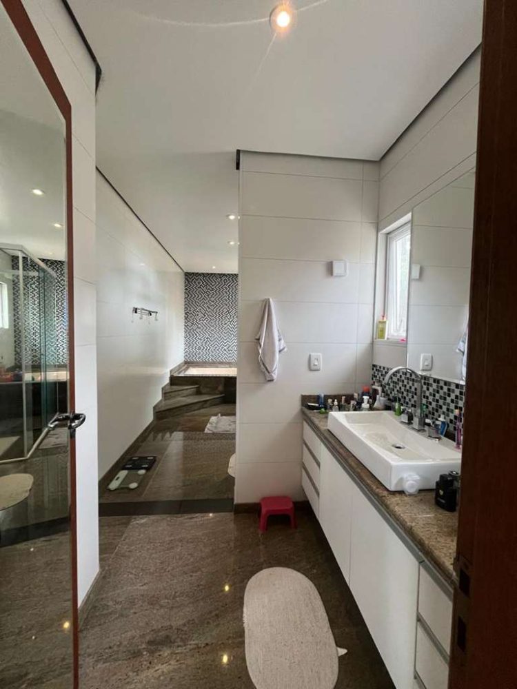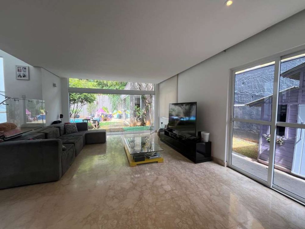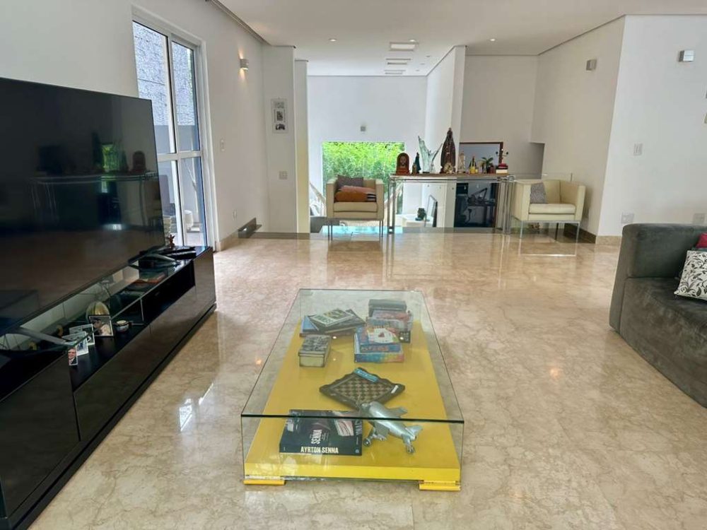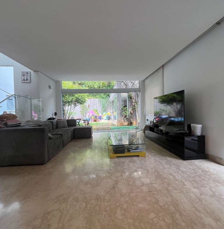• Cada espaço da casa conta com acabamentos primorosos que se revelam nos pisos em mármore nas salas e madeira na ala íntima, armários planejados.