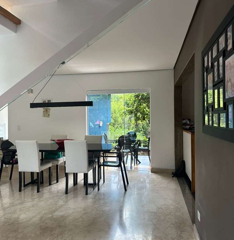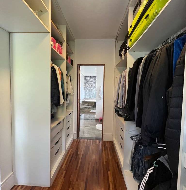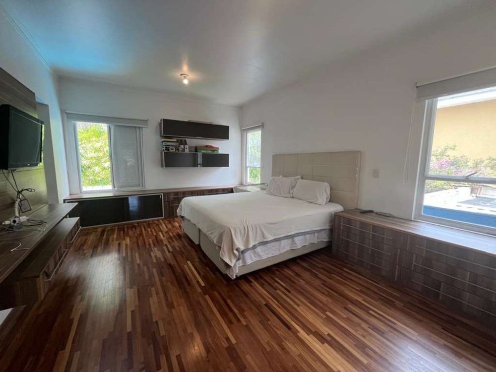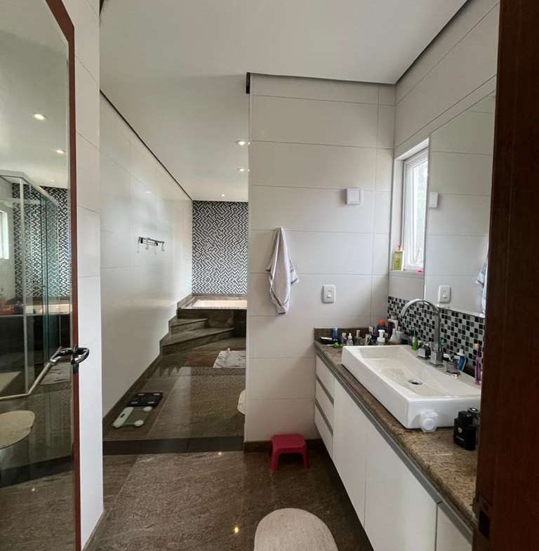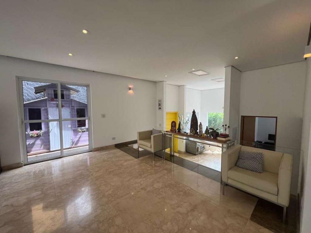 • Cada espaço da casa conta com acabamentos primorosos que se revelam nos pisos em mármore nas salas e madeira na ala íntima, armários planejados.