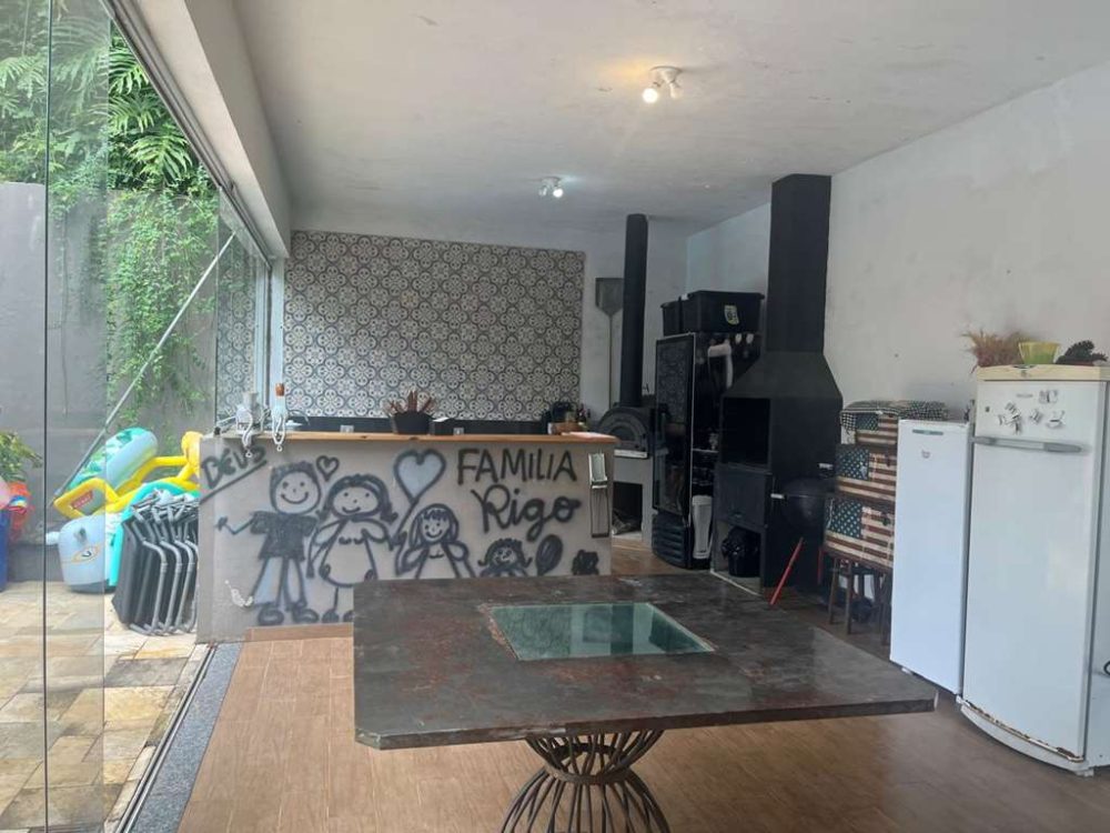 • Amplo espaço gourmet com churrasqueira e forno de pizza, perfeito para momentos de lazer.