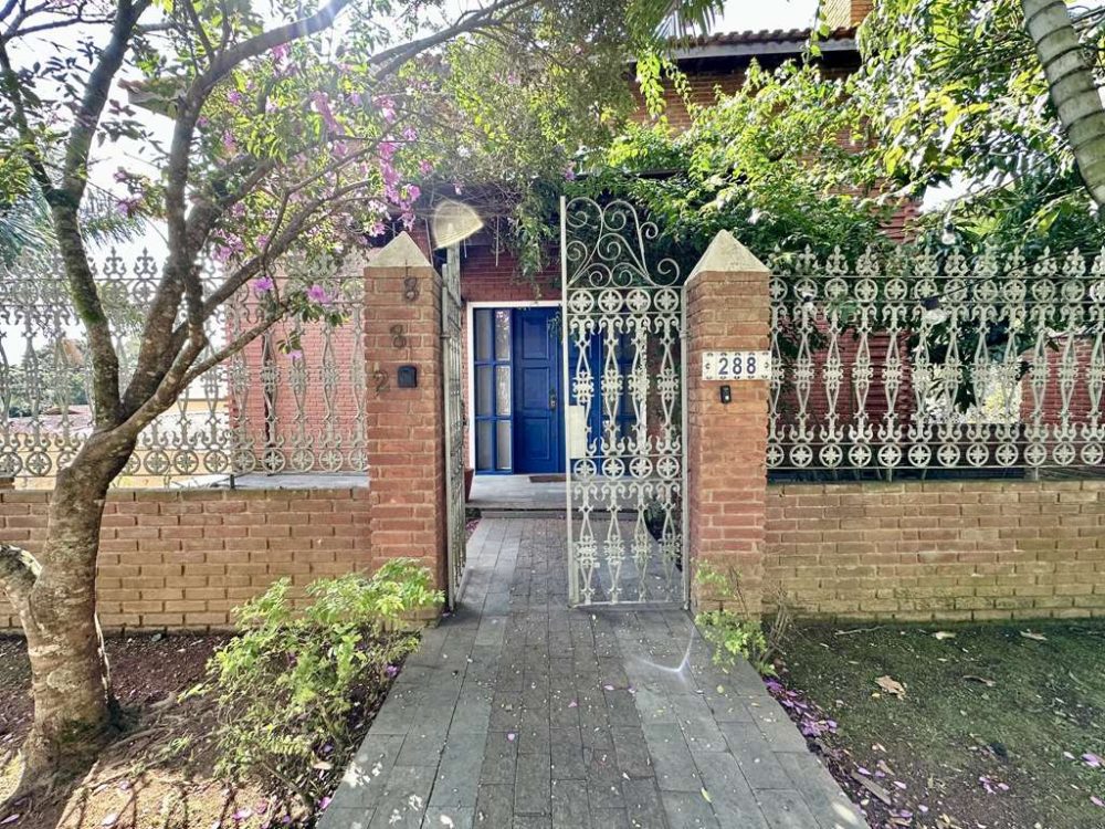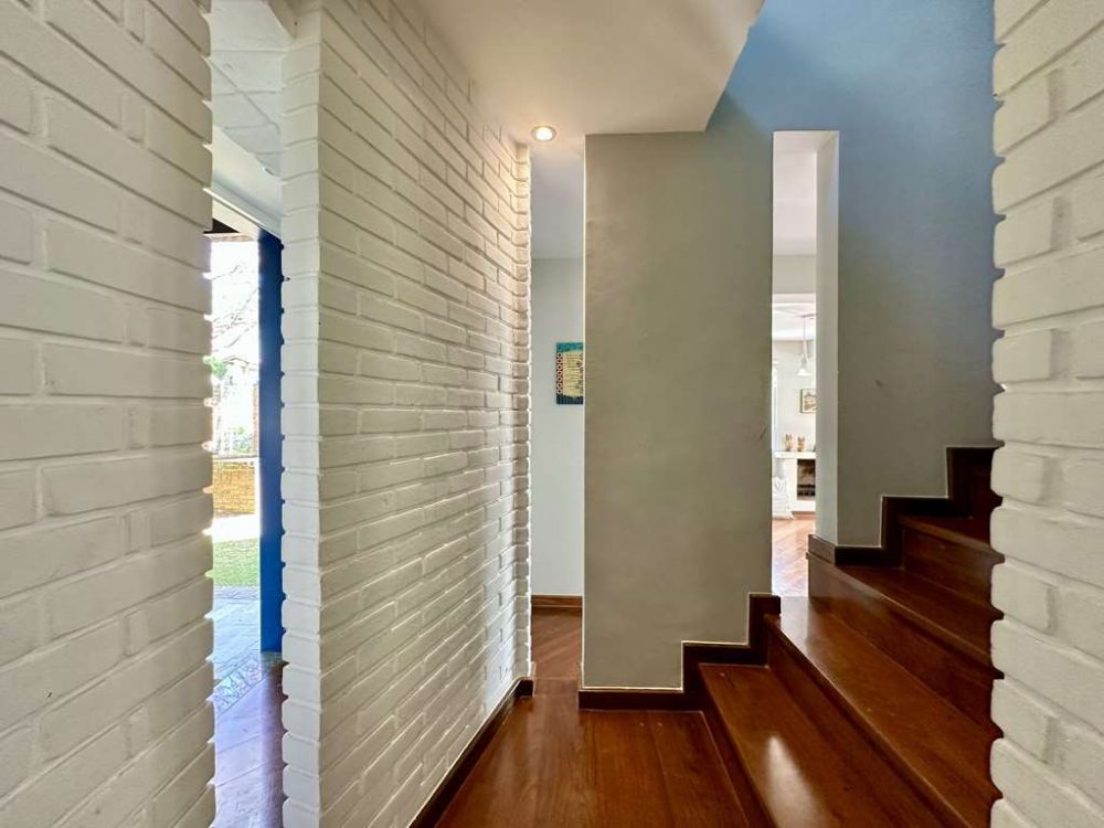 • Casa de tijolos aparentes com grande pátio que integra o salão de festas gourmet, ala de hóspedes, piscina e jardim.
