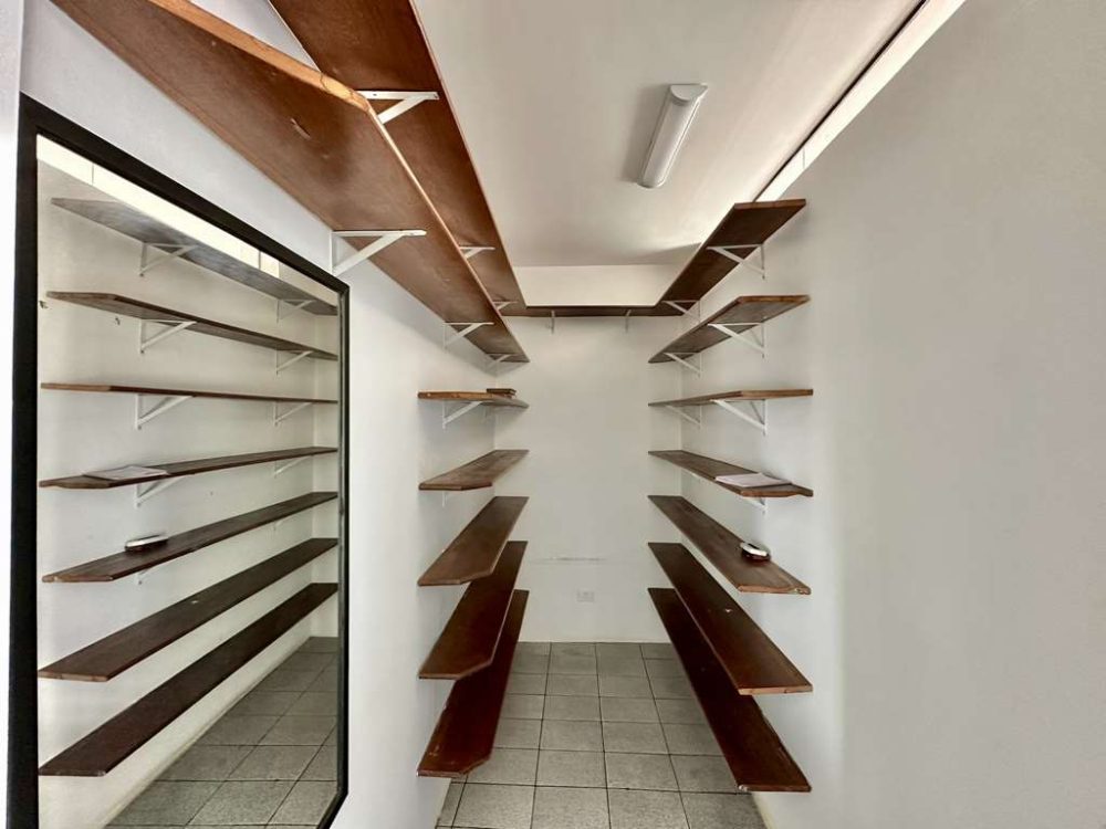 • 1 suíte no piso inferior com porta de correr, armário e ar-condicionado.