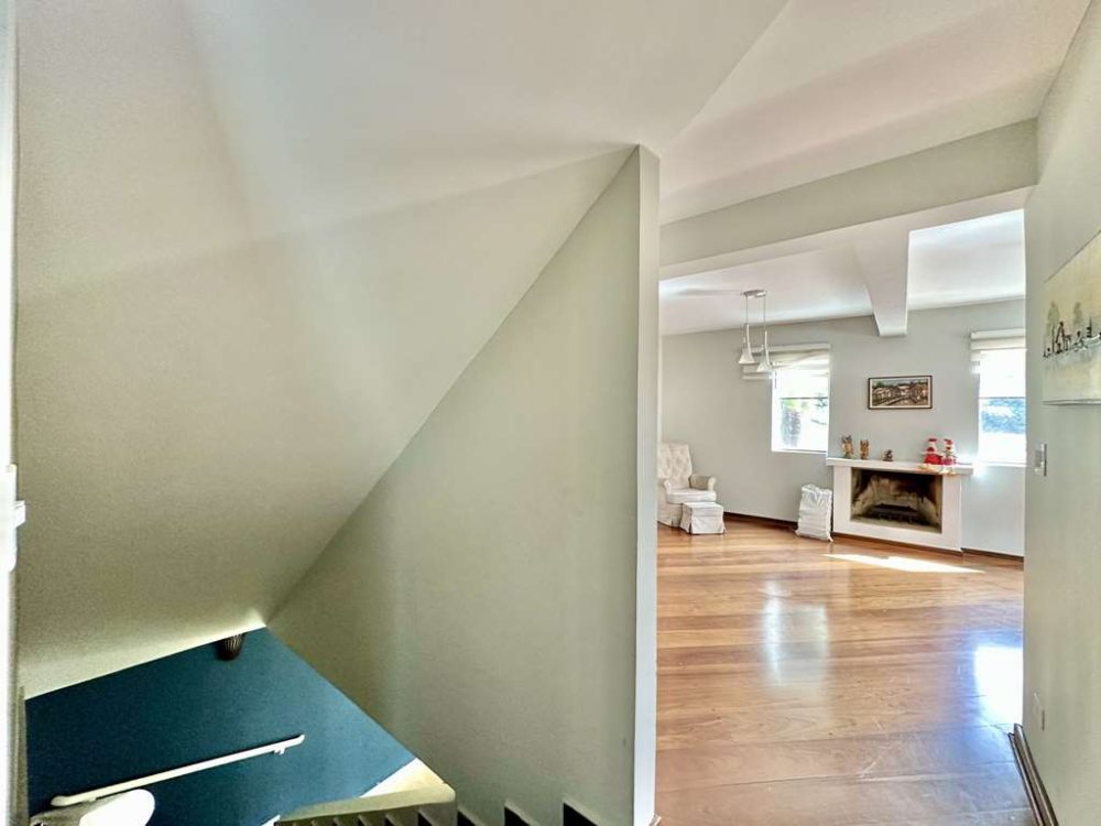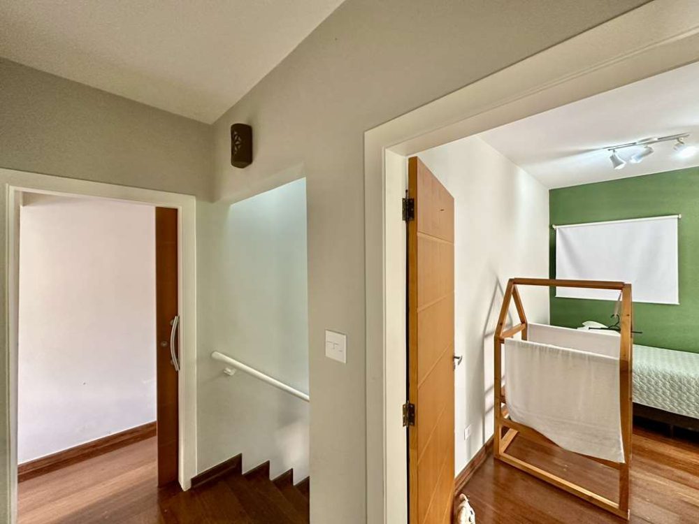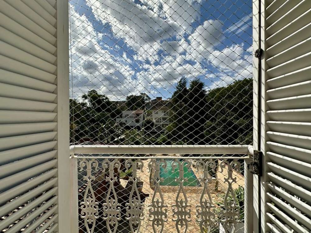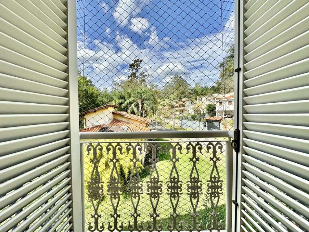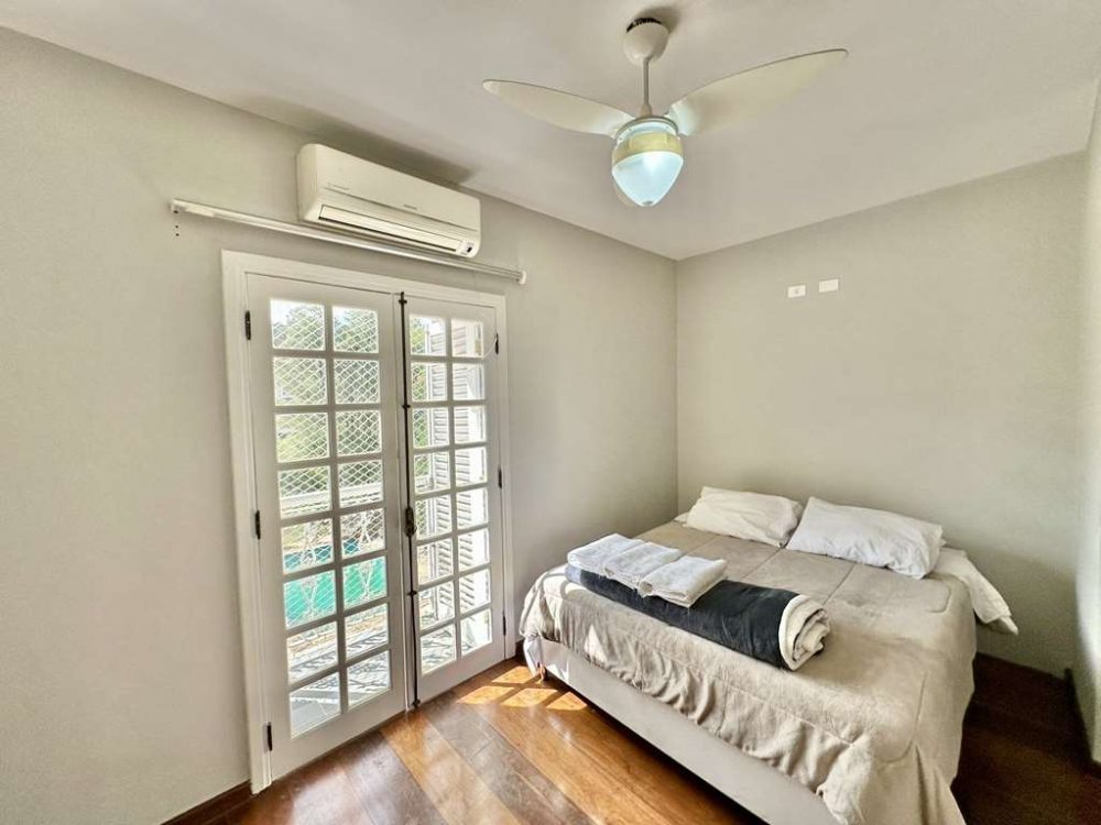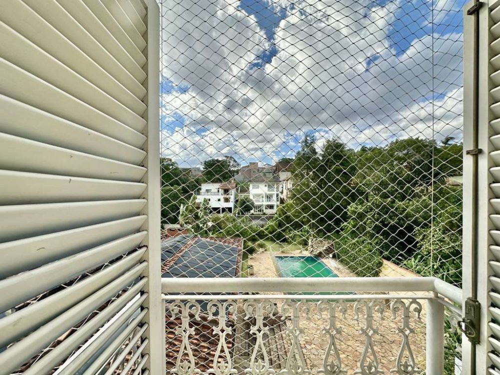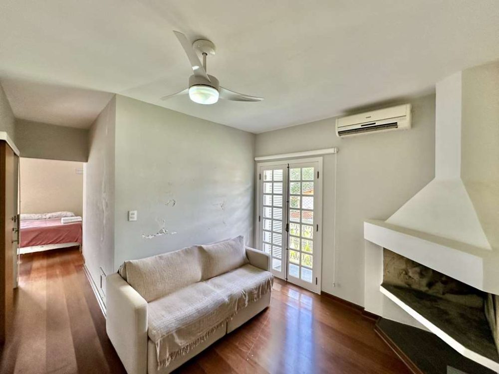 • 3 suítes no piso superior, com terraços, ar-condicionado, sendo a master com sala íntima e lareira. 2 com armários, 1 com ventilador.