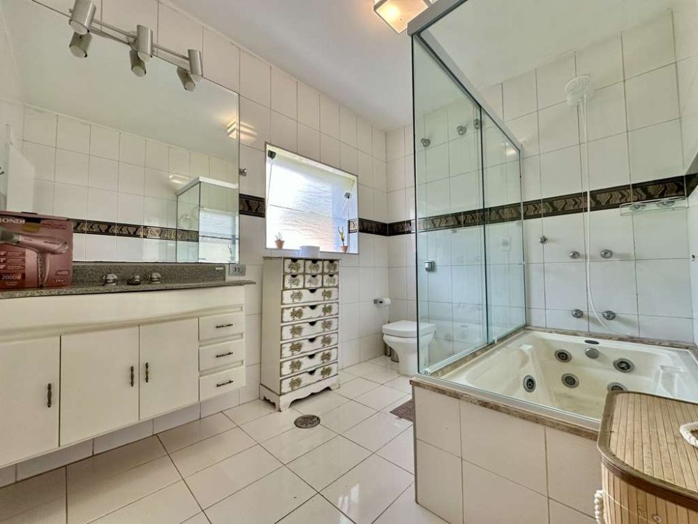 • Banheiros com espelho, gabinetes e box de vidro, sendo a master com hidro.