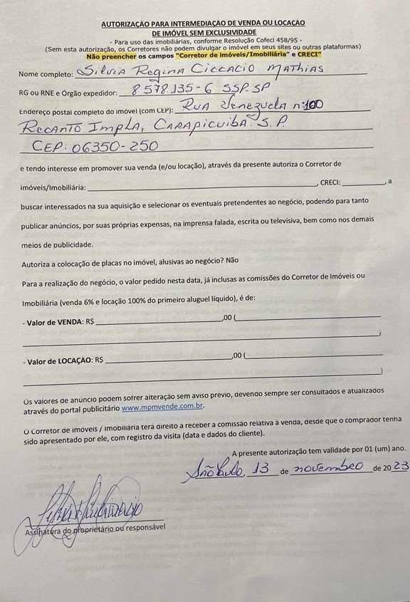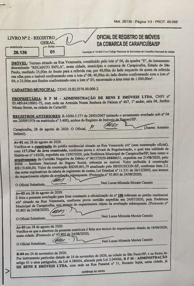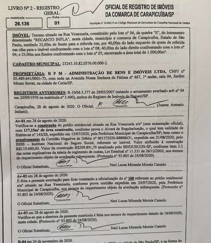 Nº Matrícula: 26.136 / R.I. Carapicuíba