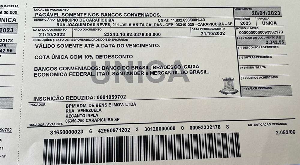 Inscrição Cadastral: 23243.10.82.0376.00.000 / Carapicuíba