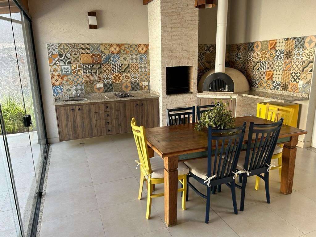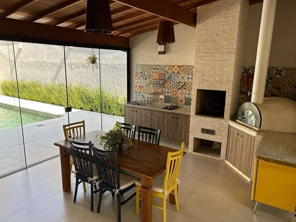 • Possui 3 suítes, lazer completo com espaço gourmet, piscina com pedra Hijau natural aquecida e fogo de chão no jardim.