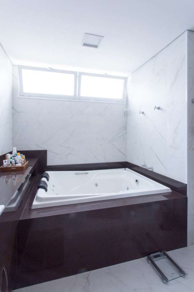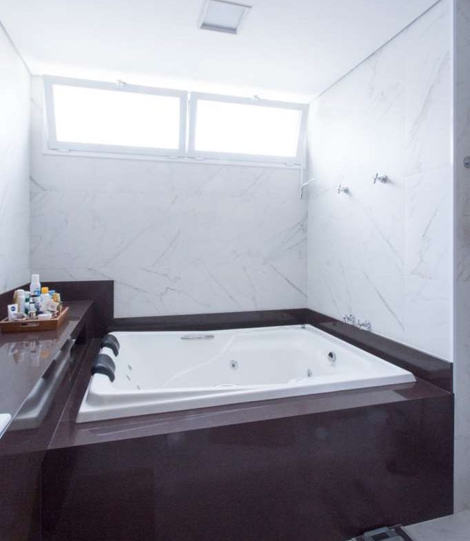 - Banheiro com ducha e jacuzzi dupla com hidromassagem e cromoterapia