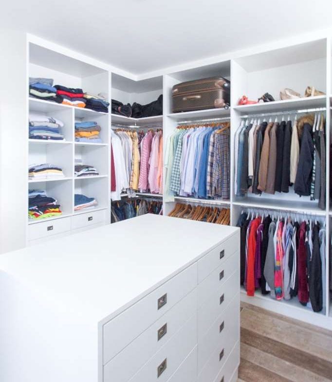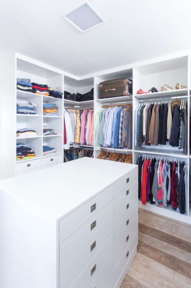 - Suíte master com cerca de 24 m2, com quarto de vestir de 16 m2 todo cercado com armários, gaveteiros e prateleiras planejados, e