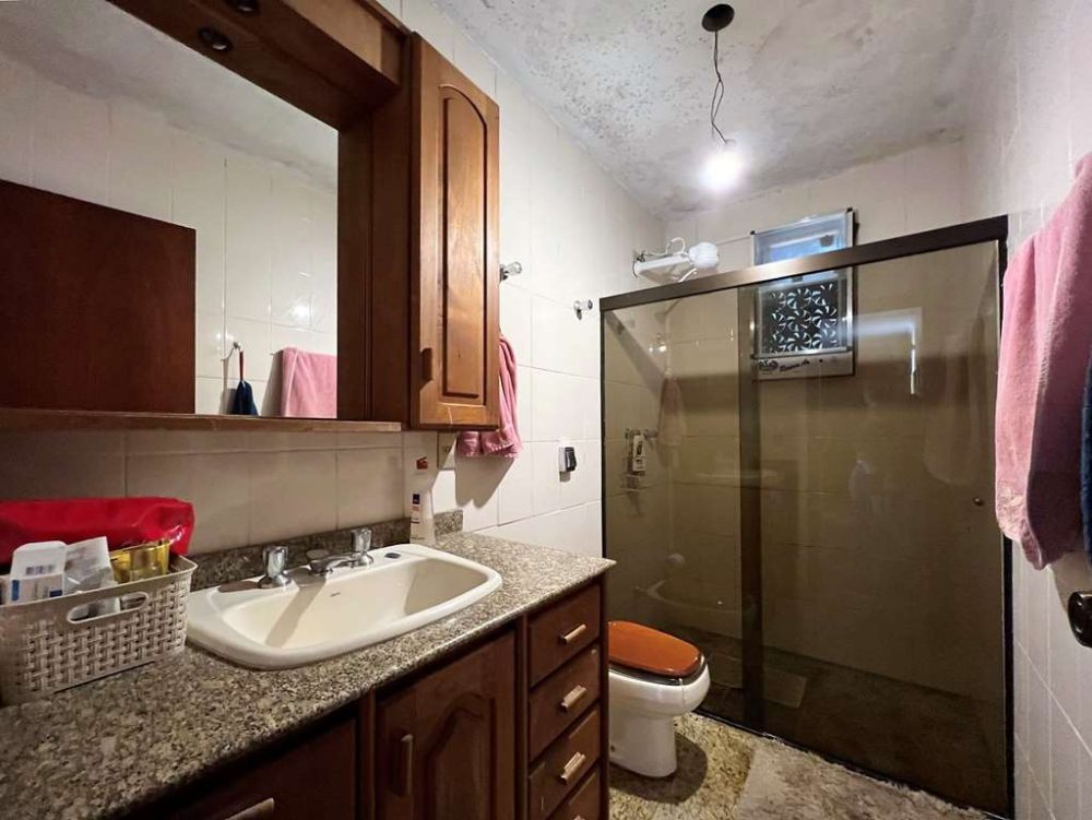 - Banheiros com espelho, bancadas em granito, gabinete e box de vidro, sendo a máster com hidro.
