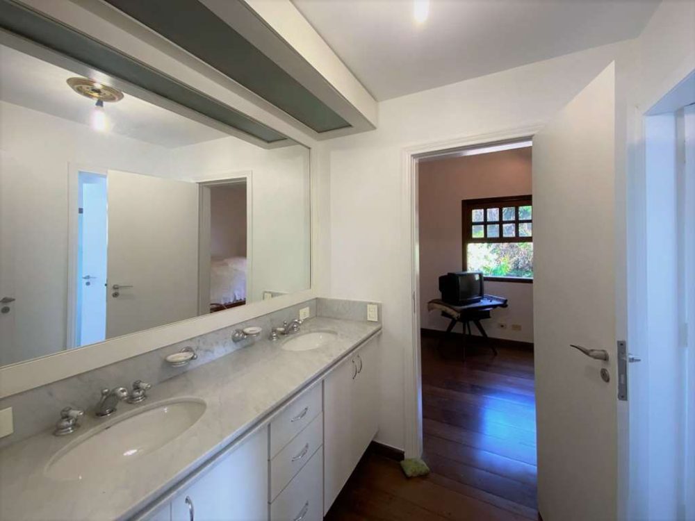 - Banheiros com bancadas em mármore Carrara, espelho, gabinetes, box de vidro e ducha higiênica. As 2 suítes americanas com lavatório externo e 2 cubas.