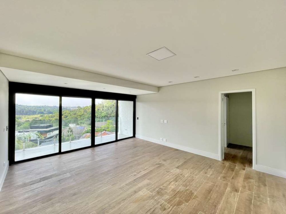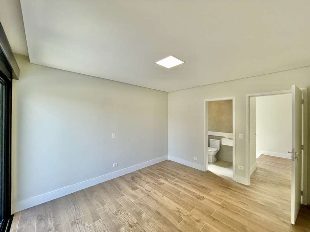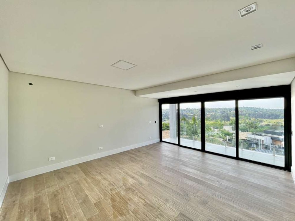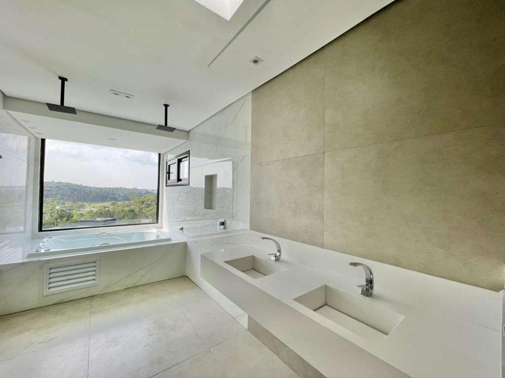 - A Suíte Master com vista espetacular para o Campo de Golf, closet com armários planejados, com claraboia integrado ao banheiro com porta de correr.