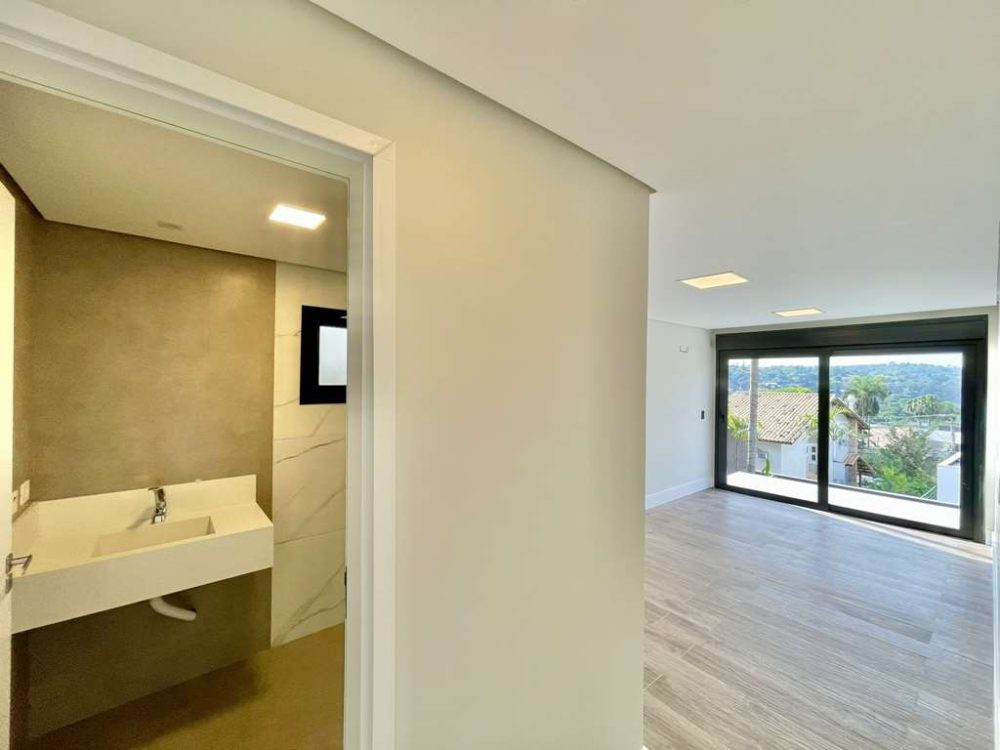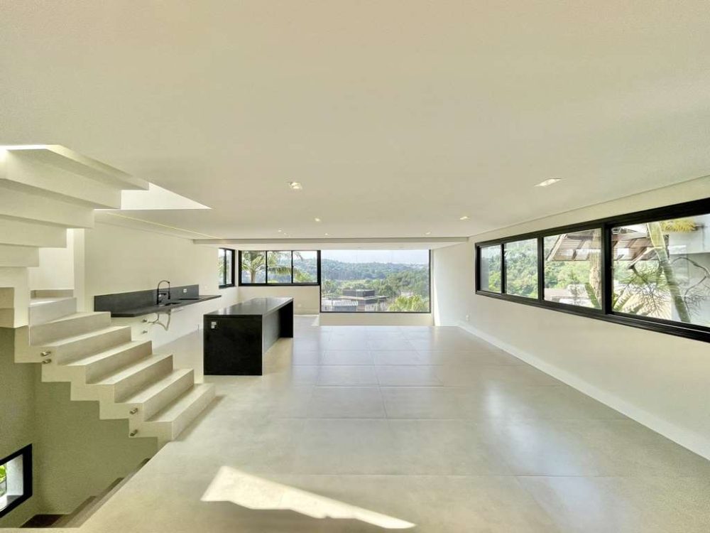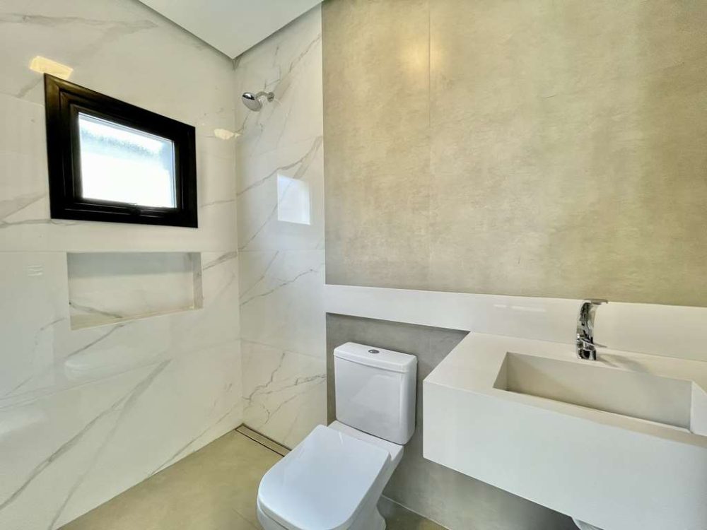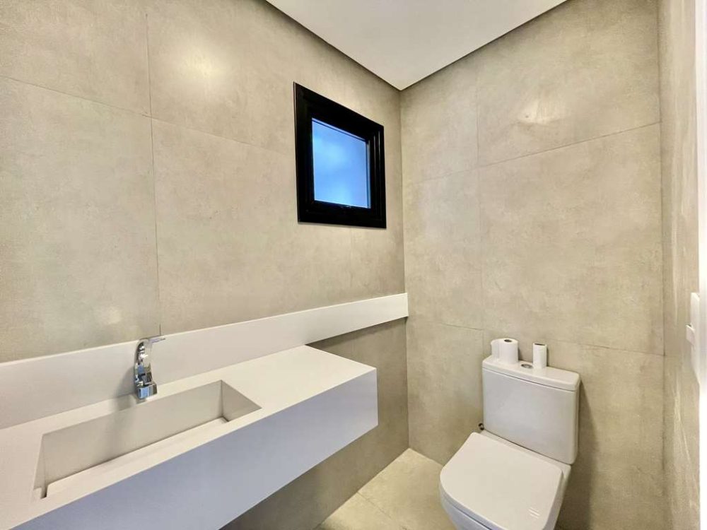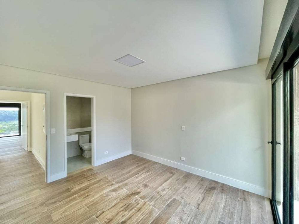 - A Suíte Master com vista espetacular para o Campo de Golf, closet com armários planejados, com claraboia integrado ao banheiro com porta de correr.