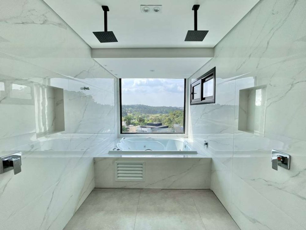- Sendo a master com 2 cubas, 2 duchas de teto e hidro dupla panorâmica envidraçada com vista para o Campo de Golf.