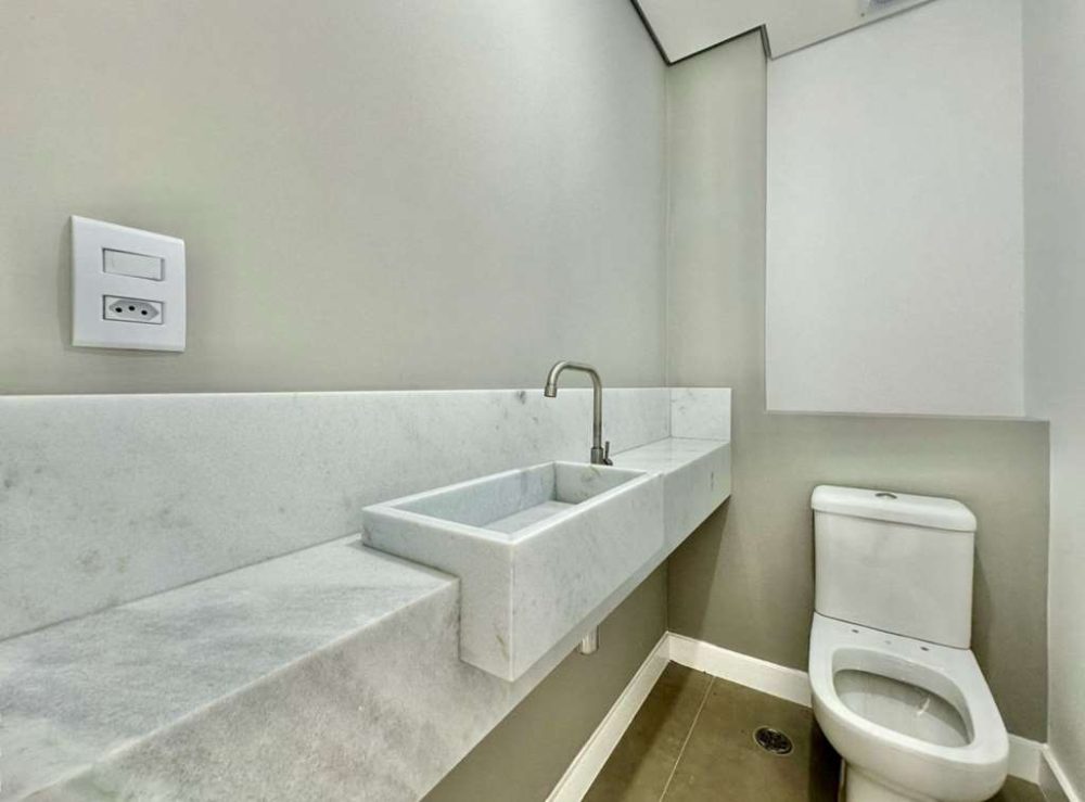 - Sala de jantar integrada à cozinha e varanda gourmet com jardim.