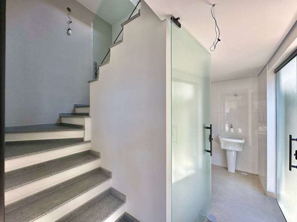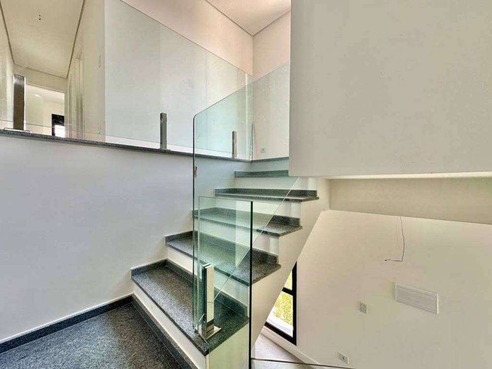 - Escadas com piso em granito e guarda-corpos em vidro com fixação em aço inox.