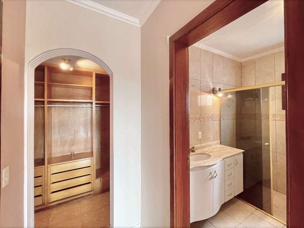 - Suíte master com varanda privativa e banheiro com duas cubas e banheira.