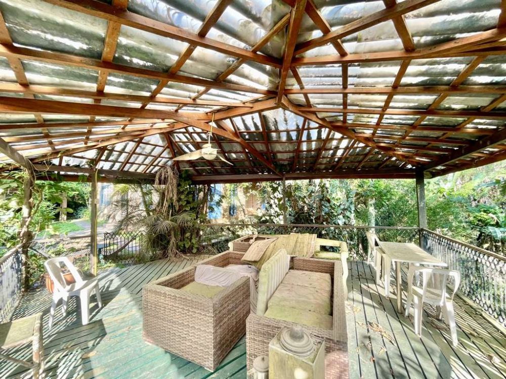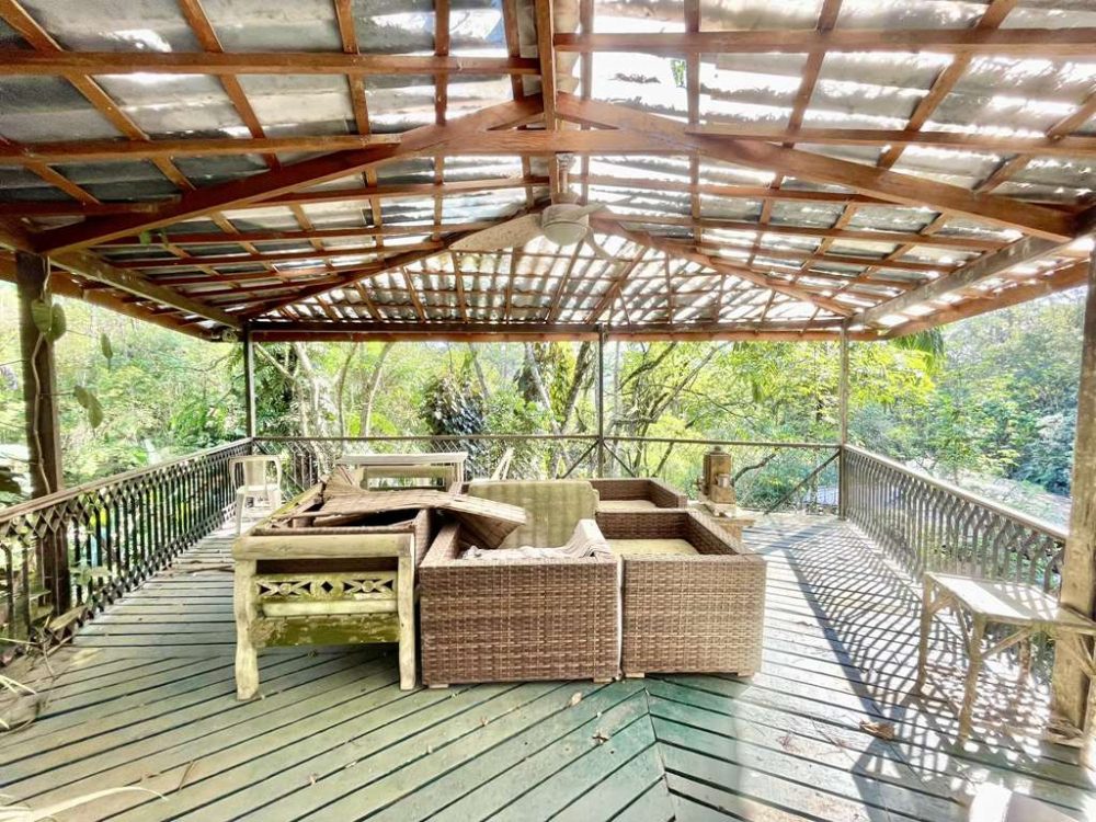 - Lareira, integrado à uma grande varanda deck suspensa.