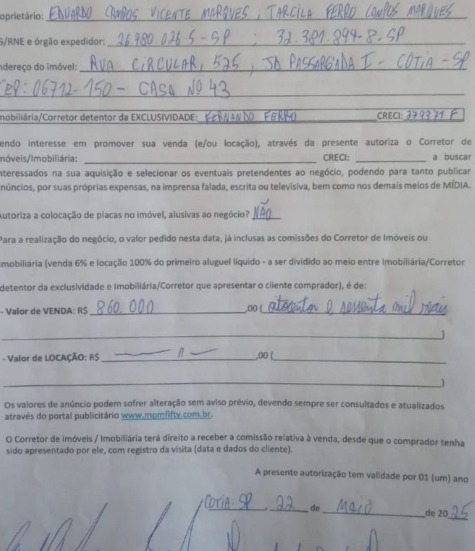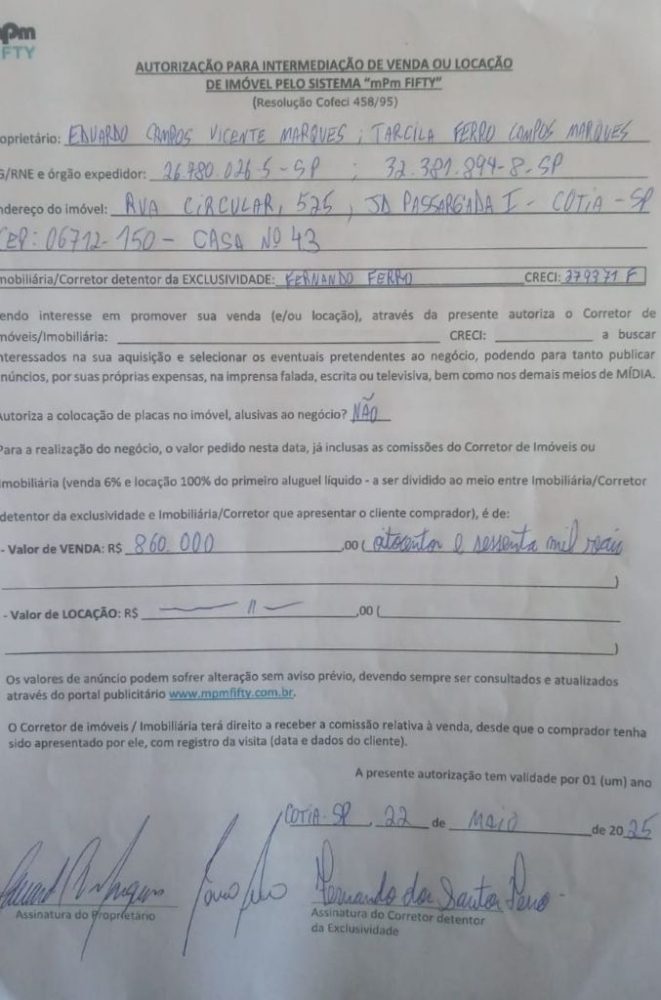 - Valor de Venda: R$ 860.000,00 (oitocentos e sessenta mil reais)