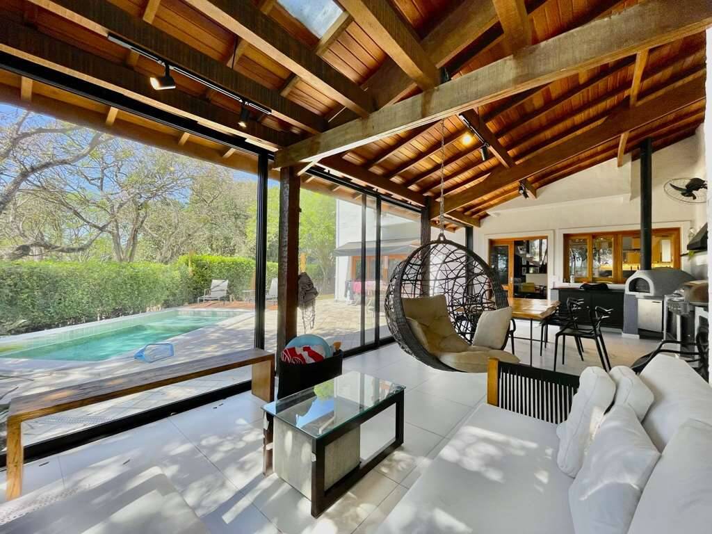 - Living para 5 ambientes integrados à varanda gourmet, piscina e jardim.