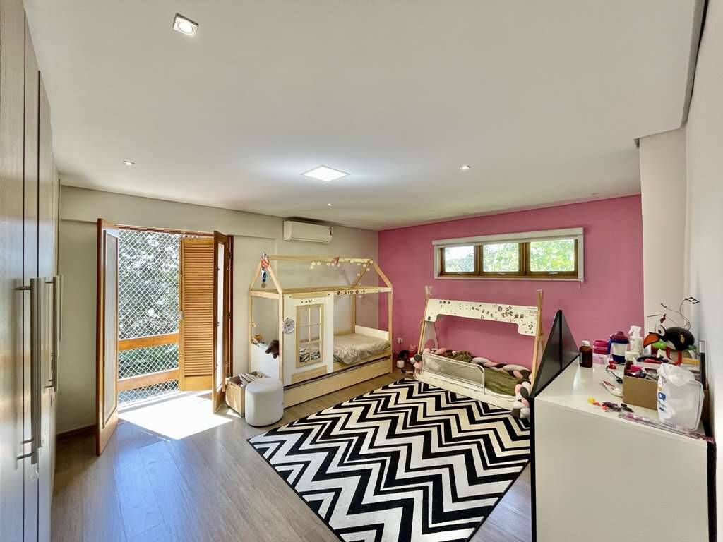 - PISO SUPERIOR (3 dorms). 1 Suíte Master com closet, parede detalhe em Peroba Rosa. 1 Suíte Americana (com 2 dorms interligados) armários e portas de correr.