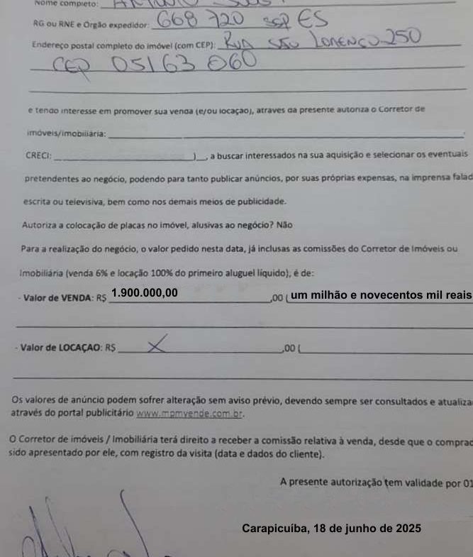 - Valor de Venda: R$ 1.750.000,00 (um milhão, setecentos e cinquenta mil reais)