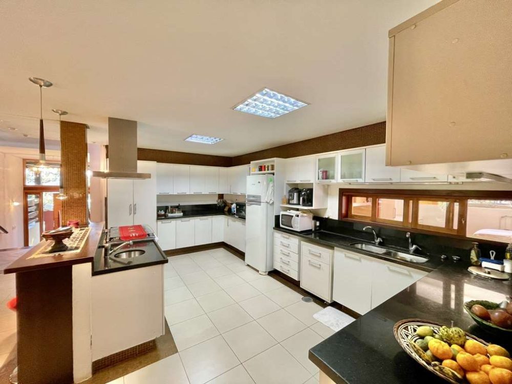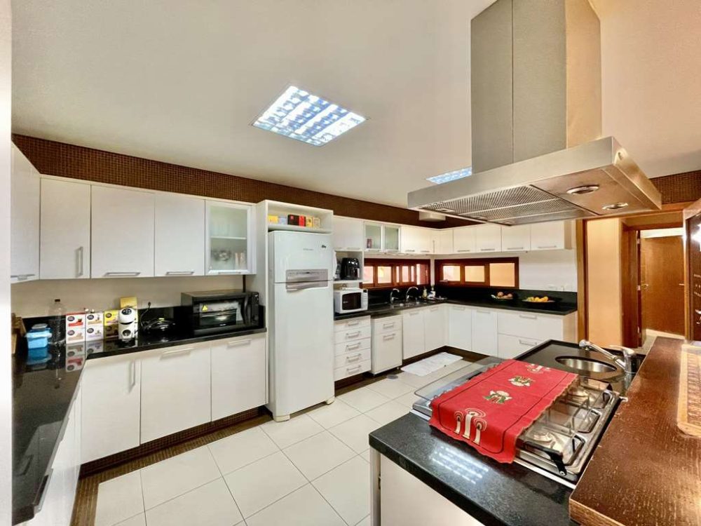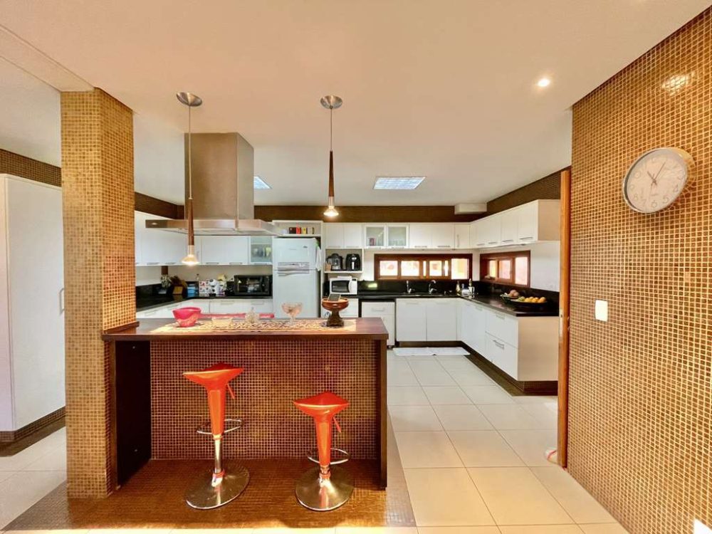 - Cozinha planejada repleta de armários e gabinetes, integrada à sala de jantar, com bancada em “U”, 2 cubas Inox, ilha com balcão e coifa inox.