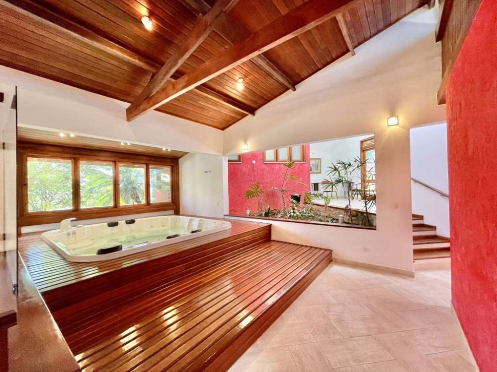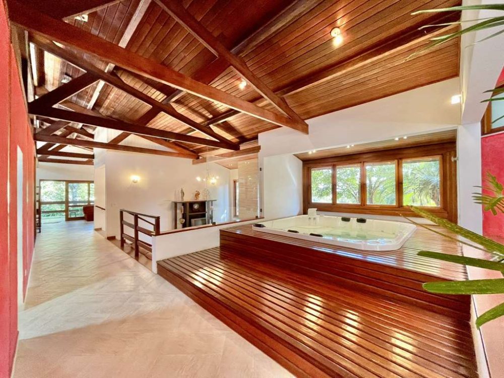 - Estar, jantar, bar, lareira em canjiquinha e um SPA em deck com Hidro Jacuzzi aquecida, para 12 pessoas na sala.