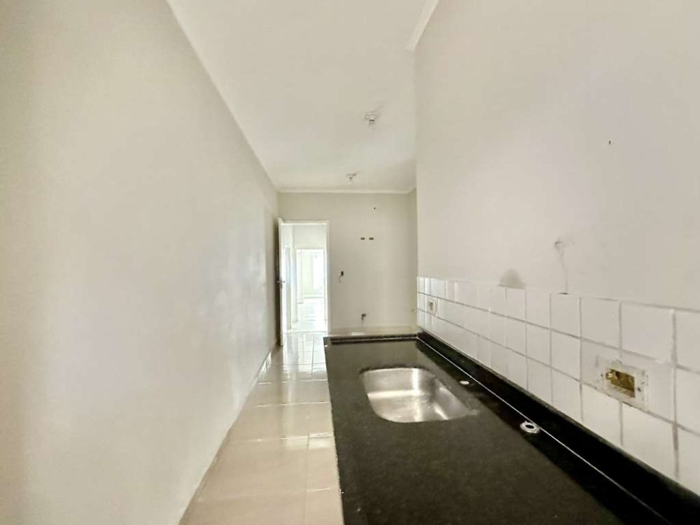 - Copa/cozinha com pia inox, voltada para um quintal coberto e fechado.