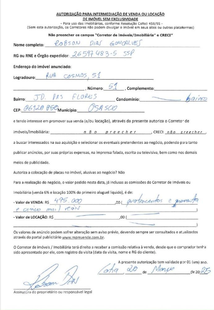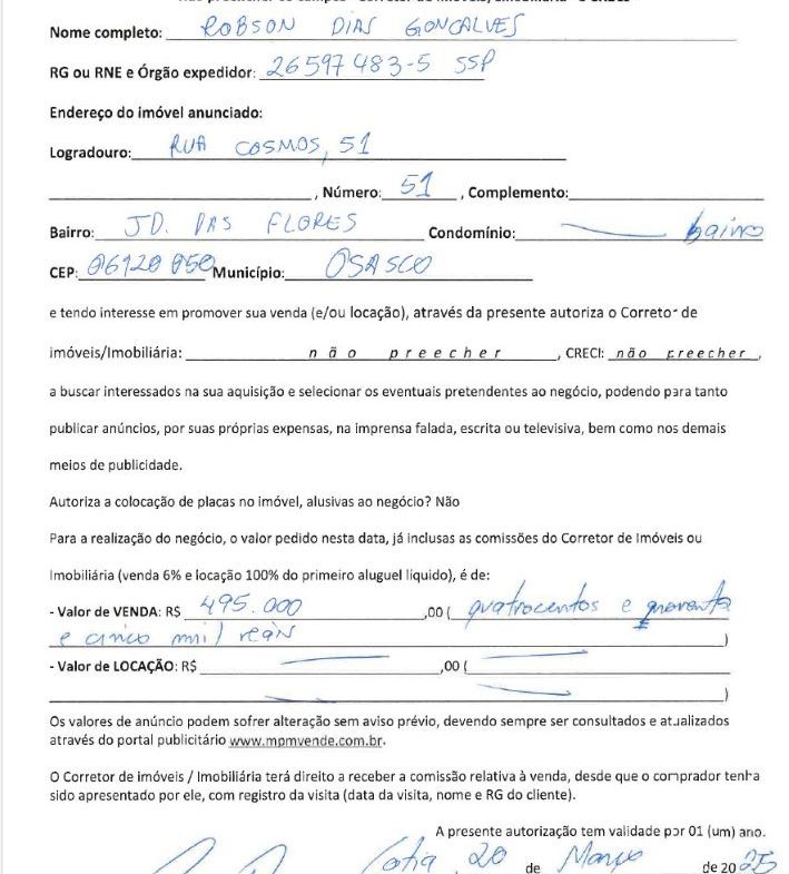 - Endereço do imóvel: Rua Cosmos, 51 – Jardim das Flores, Osasco – CEP: 06120-050