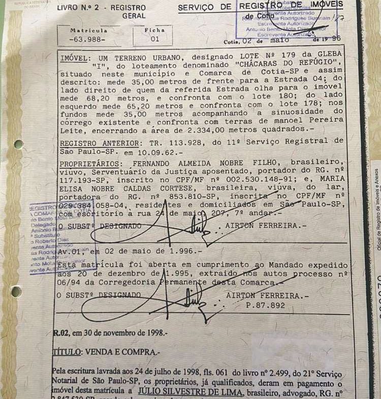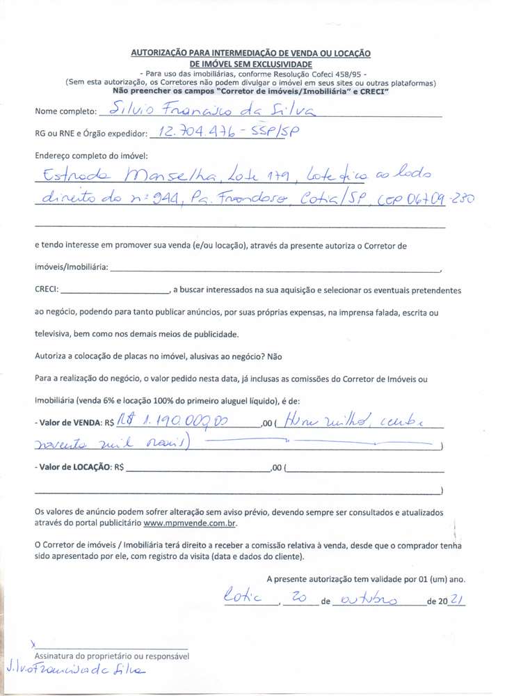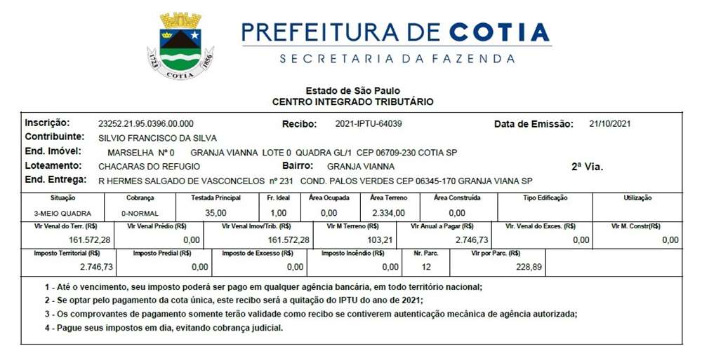 Inscrição Cadastral: 23252.21.95.0396.00.000/ Cotia