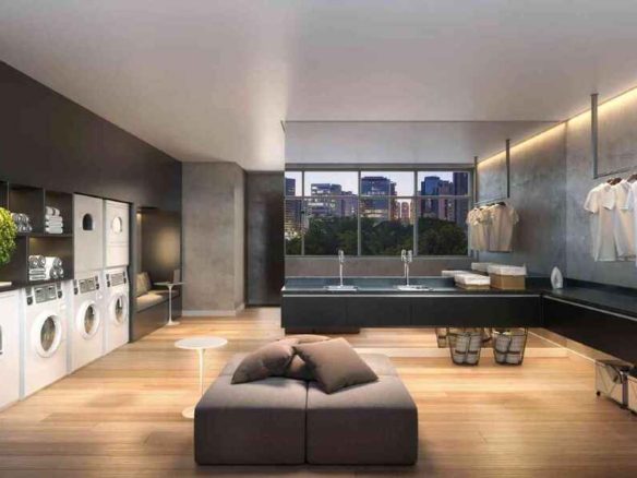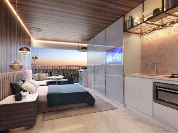 Os studios possuem plantas funcionais com 25m² e banheiro.