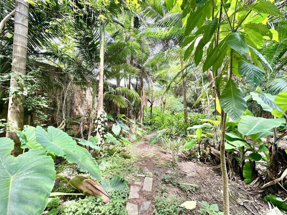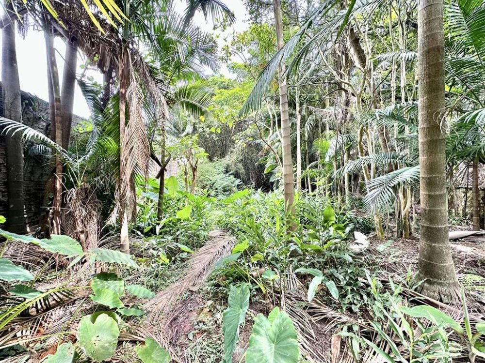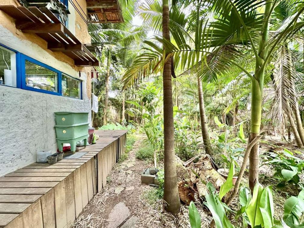 - O terreno é composto por um grande jardim natural tropical, com palmeiras, bananeiras e um bambuzal na divisa com o córrego nos fundos.