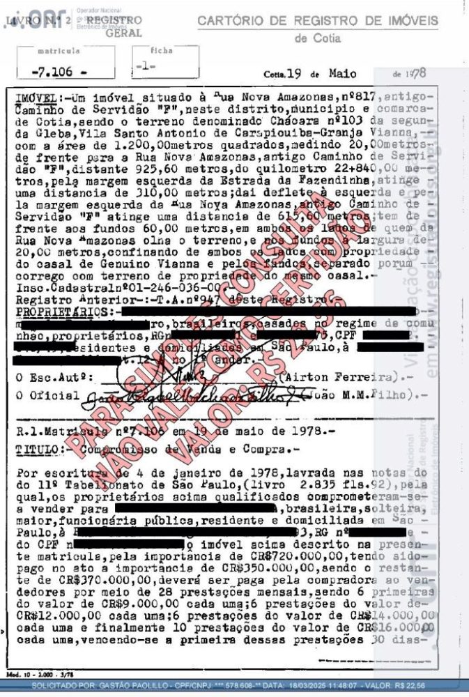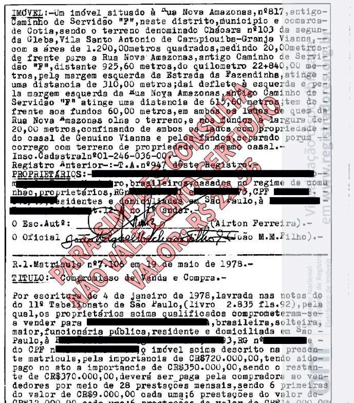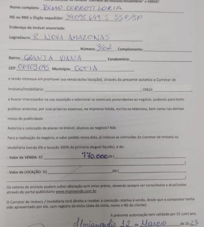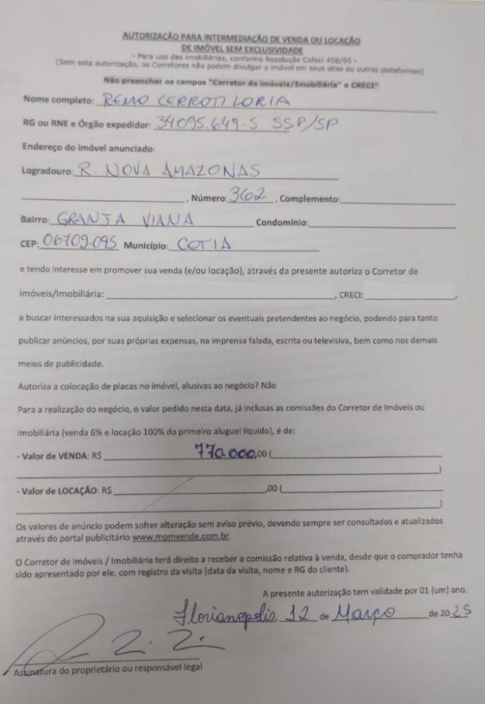 - Endereço do imóvel: Rua Nova Amazonas, 362 – Granja Viana, Cotia/SP – CEP: 06709-095